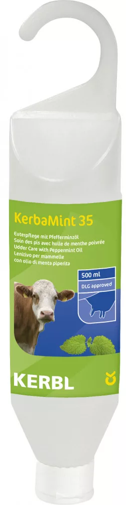 Ošetrujúci prostriedok na vemená KerbaMint vyživuje a chladí vemeno a podporuje zdravie bradaviek. Obsah mäty piepornej stimuluje krvný obeh, harmanček má protizápalové účinky. Produkt je bez antibiotík a nevyžaduje čakaciu dobu.