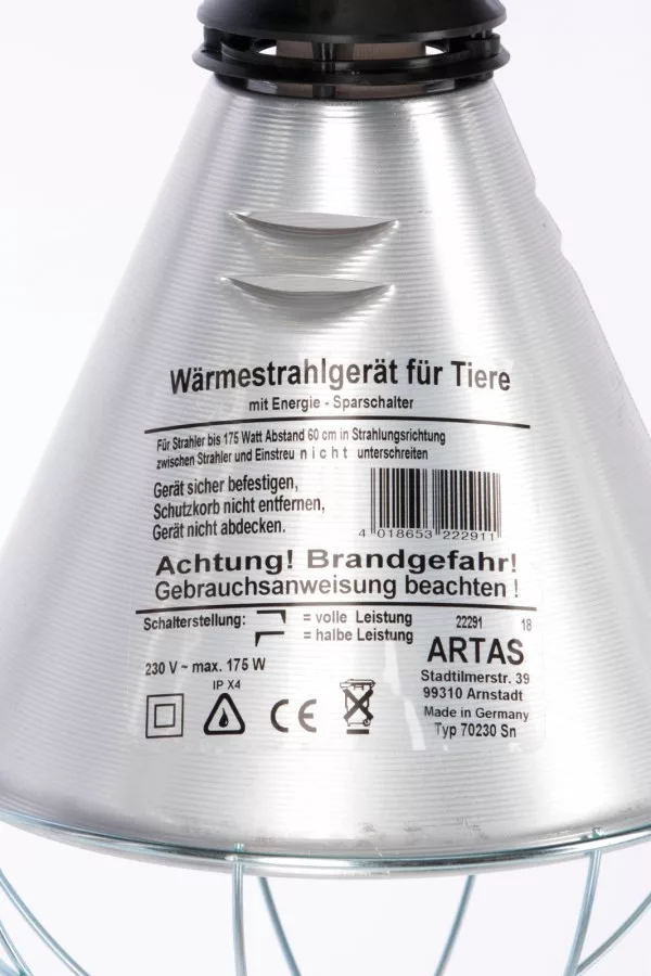Infralampa bez žiarovky (iba kryt) na ohrievanie zvierat – 5 m kábel, prepínač výkonu, pre žiarovku 175 W
