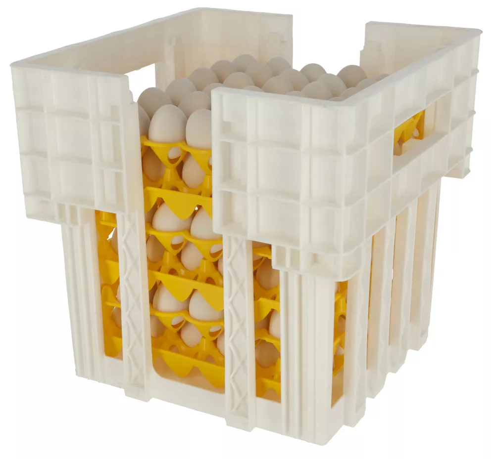 Držiak a stohovač pre nosič vajec 70294 – pevný plastový stojan na bezpečné uloženie až 180 vajec. Praktické riešenie pre farmy aj menšie hospodárstva, kde je dôležitá prehľadná a hygienická organizácia vajec.