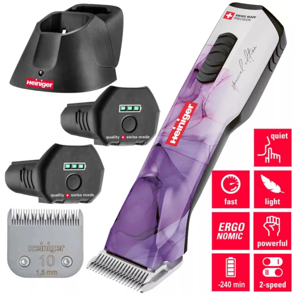 Ak hľadáte profesionálny strihací strojček pre svoju farmu alebo chov, Heiniger Opal s 2 batériami a hlavou Snap-On č. 10 je pre vás ideálnou voľbou.